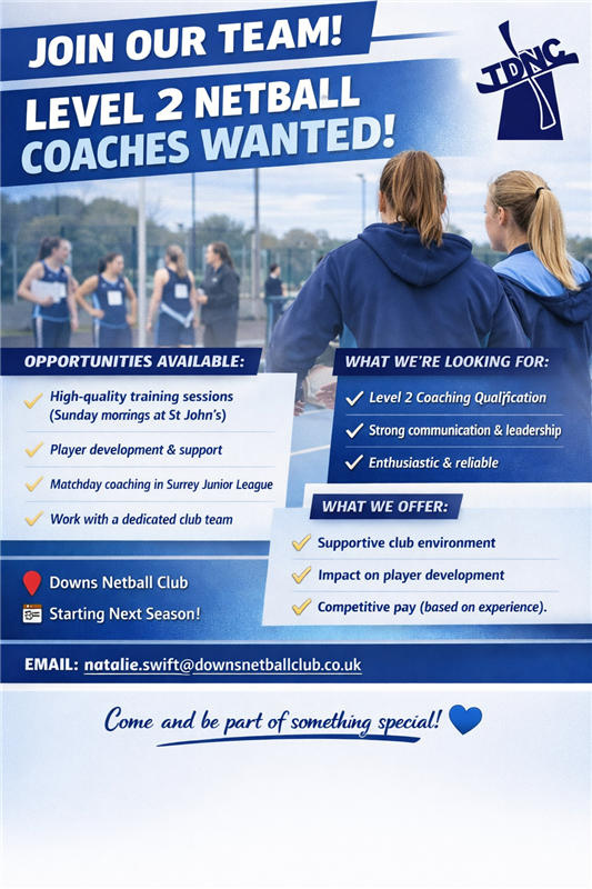 If you are interested, please send an email to natalie.swift@downsnetballclub.co.uk