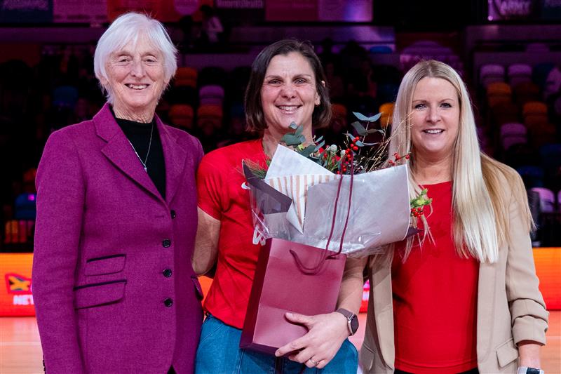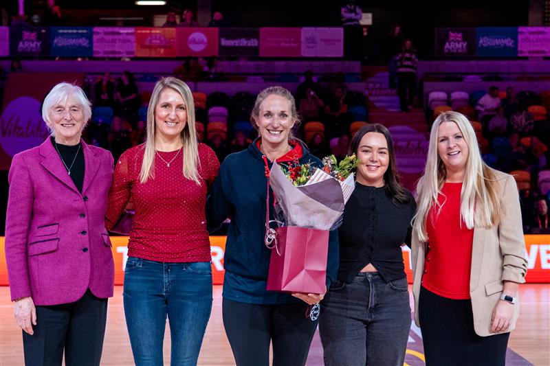 Names of all winners were shown on the screens inside the arena and the England Netball Chair (Baroness Sue Campbell) and England Netball’s CEO (Fran Connolly) presented the winners with beautiful Christmas floral bouquets.